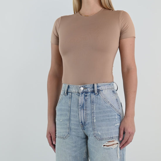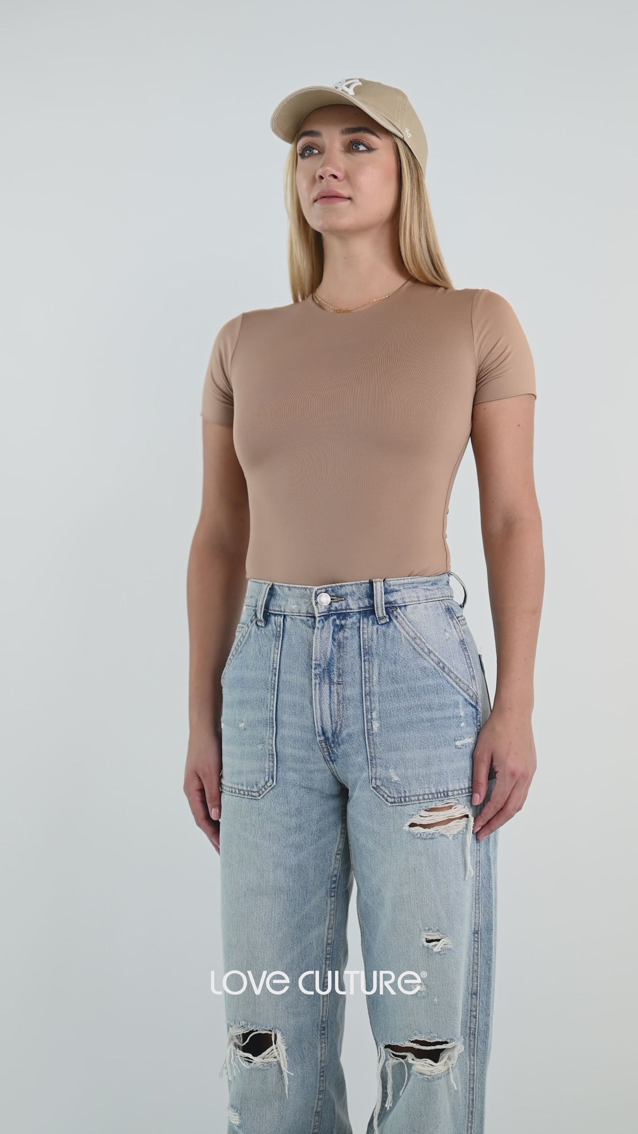 Eleganter kurzarm-Body. Das Kleidungsstück besteht aus doppeltem Stoff für mehr Komfort. Stoff mit Elastizität. Der Body hat unten einen Verschluss mit 3 Verstellmöglichkeiten.