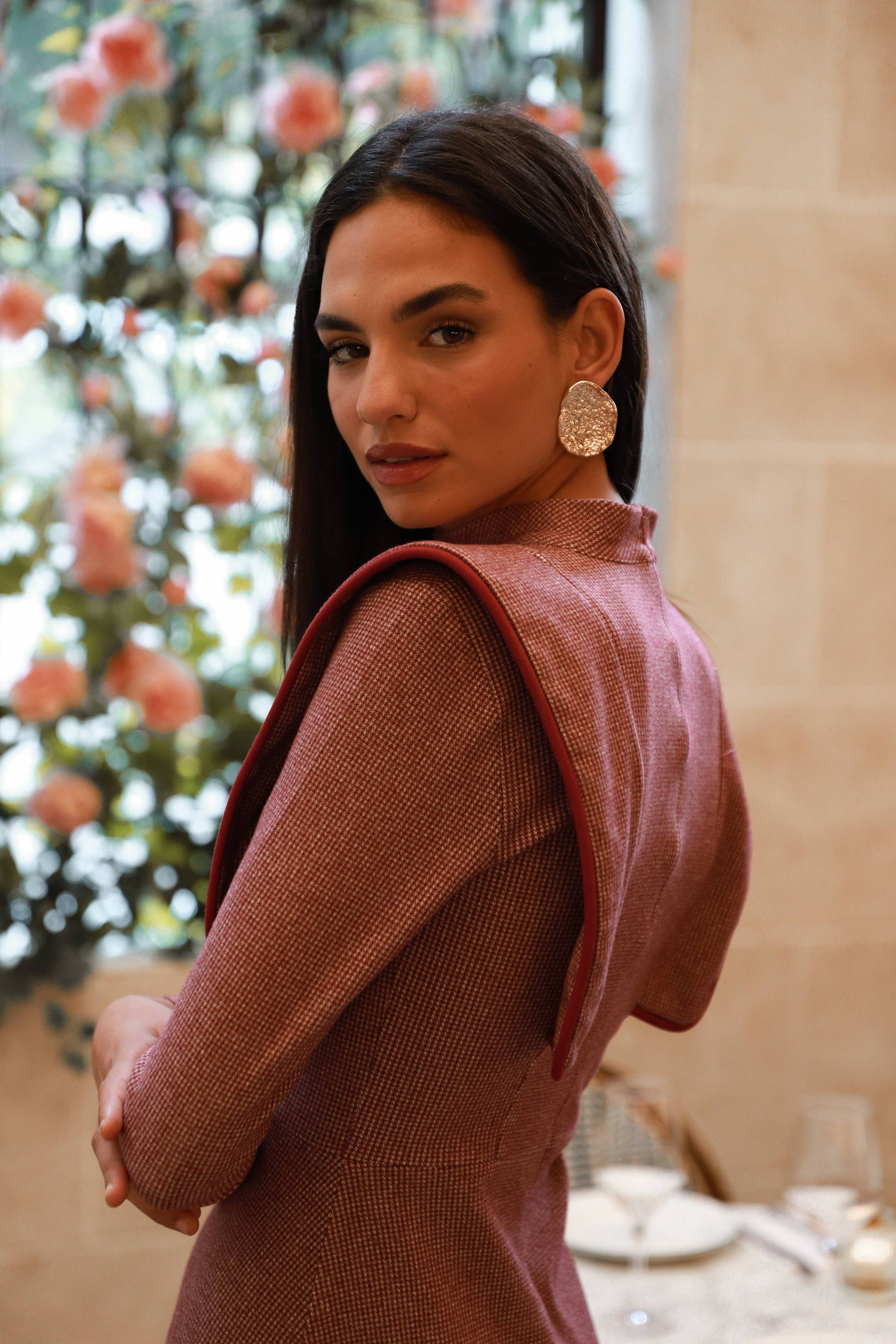 Alanis-Kleid im Hahnentrittmuster aus Strickstoff.